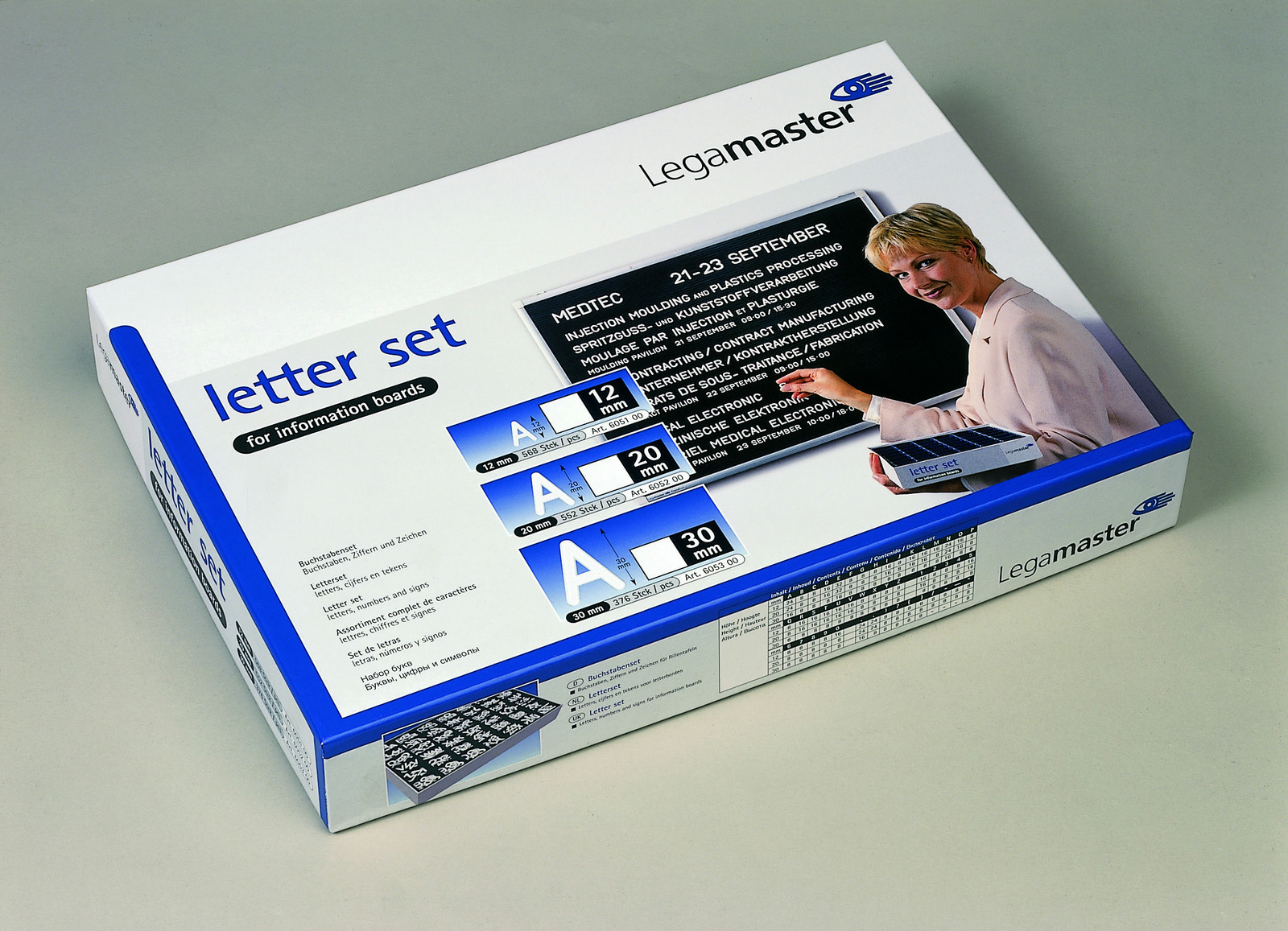 - Boxes full of character - Indispensable for use with Proline information boards - PEach character supplied in a quantity designed to reflect its frequency of use - Box with separate compartments for each letter