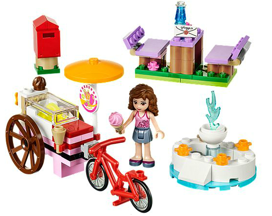 Take a ride to Heartlake City Park and help Olivia set up her ice cream stall right next to the pretty fountain. Make some chocolate and strawberry cones or take a refreshing ice pop from the freezer box to sell in the springtime sunshine. At the end of a good day’s work throw some coins into the fountain for good luck and help Olivia post a letter in the mailbox before she heads home.