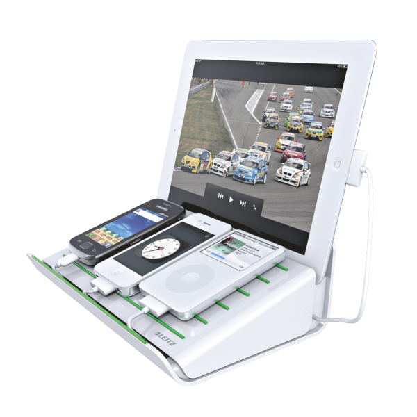Unique multicharger for simultaneously charging mobiles, iPods and tablet PCs. You can even continue to work on your device during charging. Make your mobile devices complete!