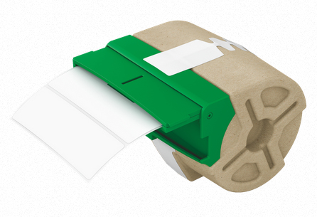 Intelligent permanent adhesive label cartridge with die-cut small address labels. Paper material. Prevents jamming or wasting an entire sheet of labels to print just one.