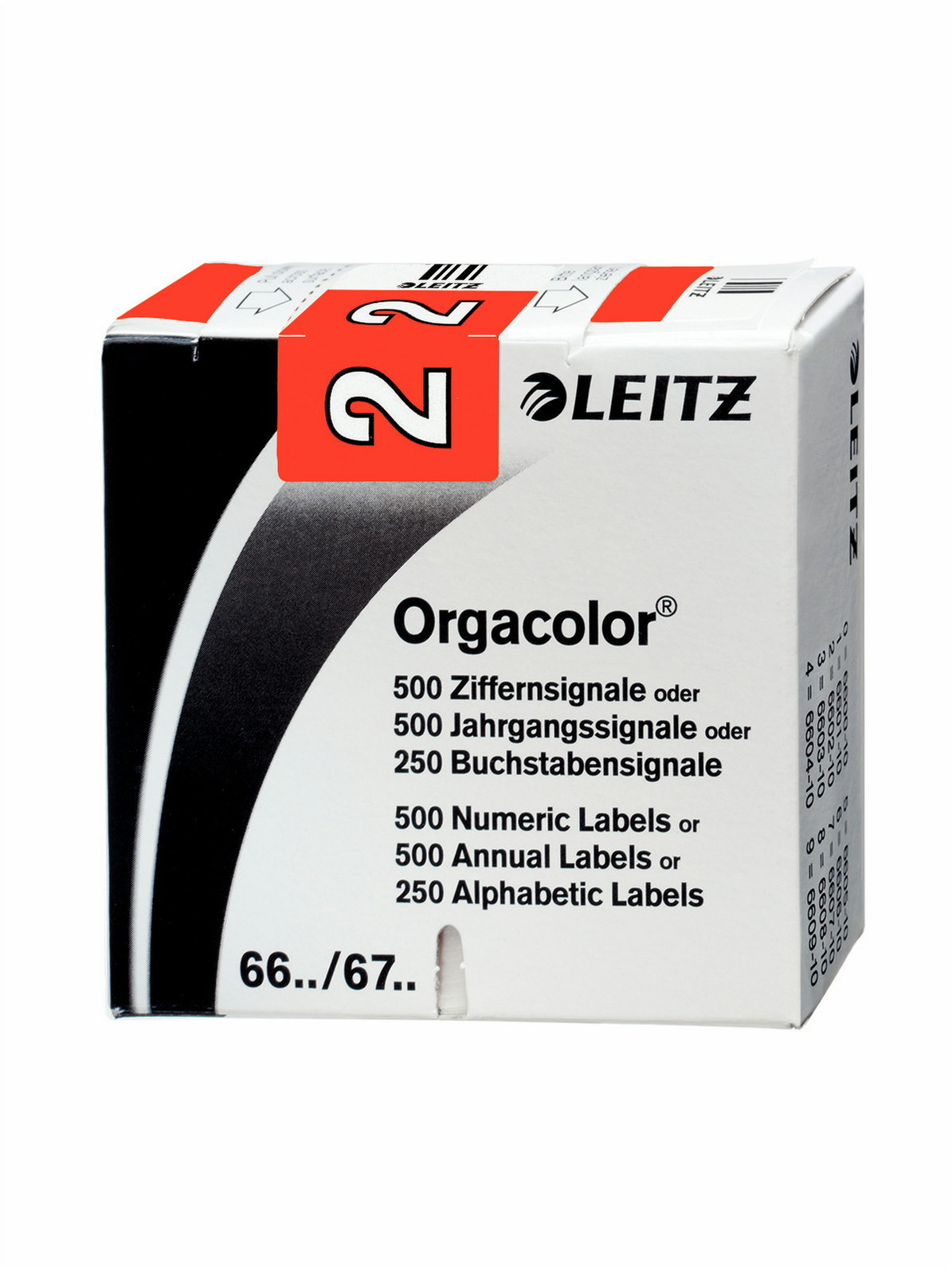 Leitz Orgacolor. Colour of product: Red, Shape: Rounded rectangle, Label size: 30 x 23 mm. Dimensions (WxDxH): 73 x 73 x 30 mm