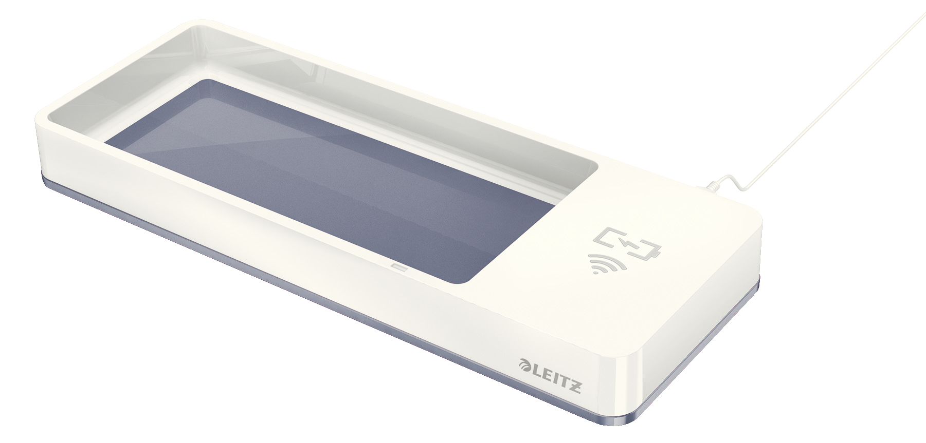 Desk organiser w/ inductive charger, Polystyrene, White/Metallic
