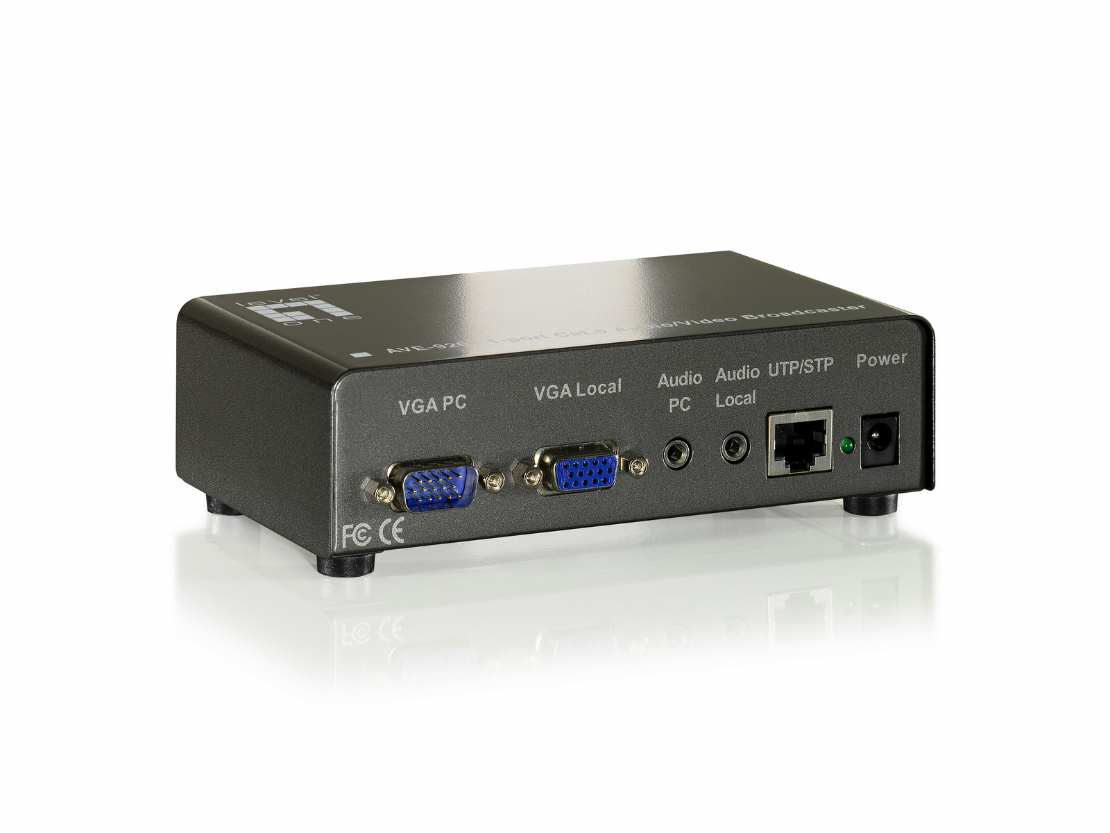 LevelOne’s The Cat.5 Audio/Video Extender is an ideal broadcast audio and video solution when operating with simultaneous to multiple remote monitors via Ethernet cable network. Our extender contains two devices, a broadcaster to collect audio sounds and video images for long-distance transmissions over popular Ethernet CAT.5 cable up to 150meter (500feet), and a receiver that receives the multimedia information and displays it on remote screens.