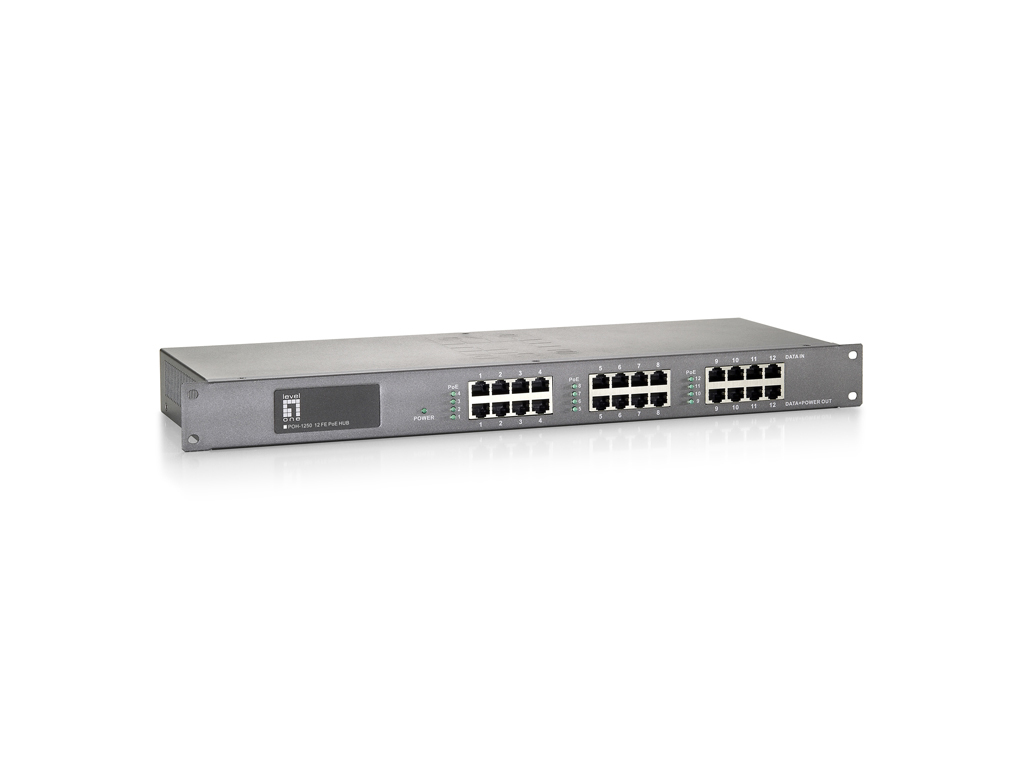 LevelOne POH-1250 12 FE PoE Hub is equipped with 12 RJ-45 ports featuring PoE function to eliminate the bulky power cable need while implementing your network infrastructure thus allowing greater flexibility in the locating of network devices and significantly decreasing installation casts.