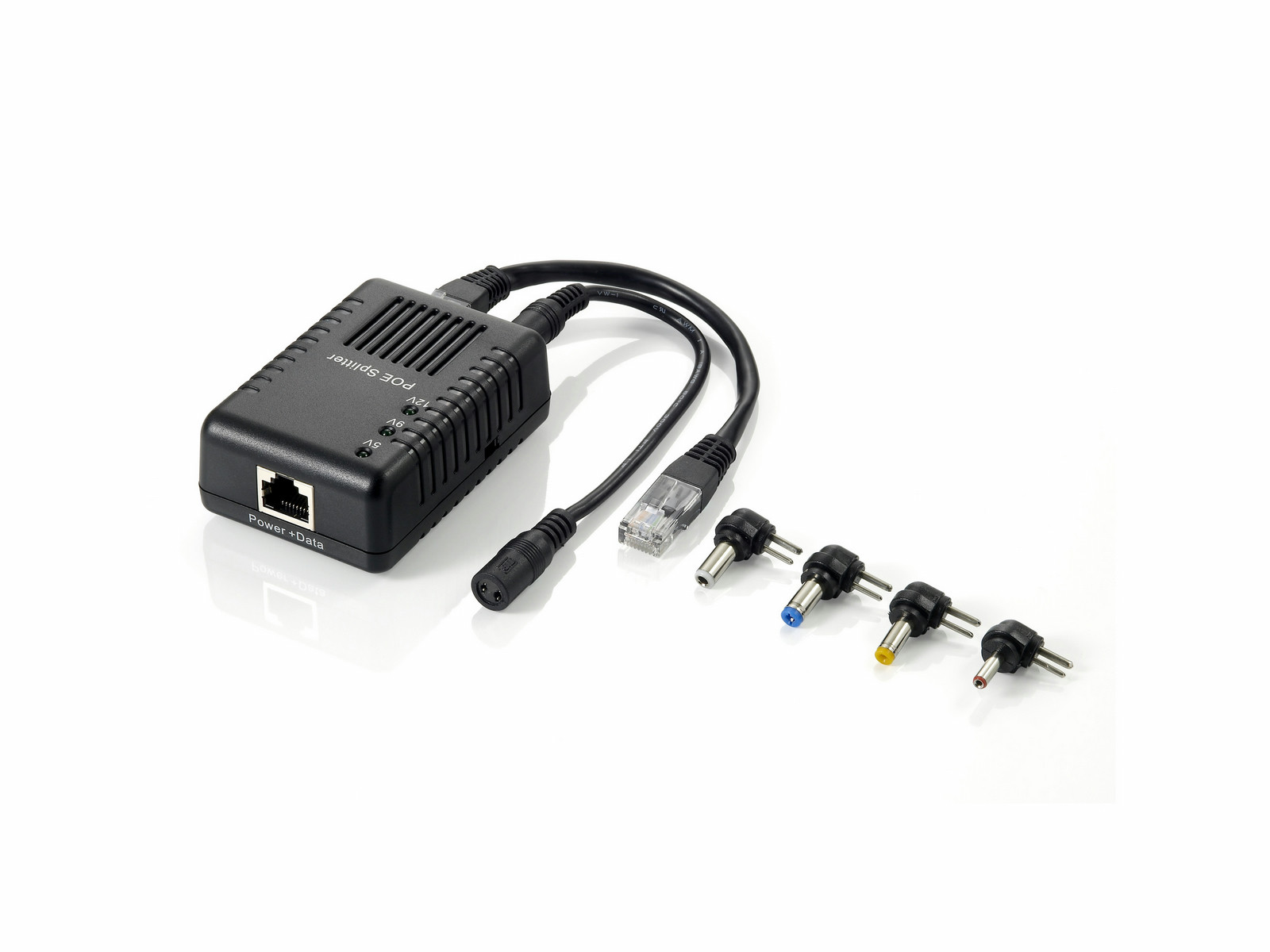The LevelOne POS-1002 PoE Splitter splits a networked PoE signal into a separate power and Fast Ethernet data sources. This device allows administrators to run Fast Ethernet speed PoE cables over long distances, and then split the PoE signal into a separate data and power sources in order to run non-PoE devices. This active PoE splitter is available in the following output voltages (5V, 9V or 12V).