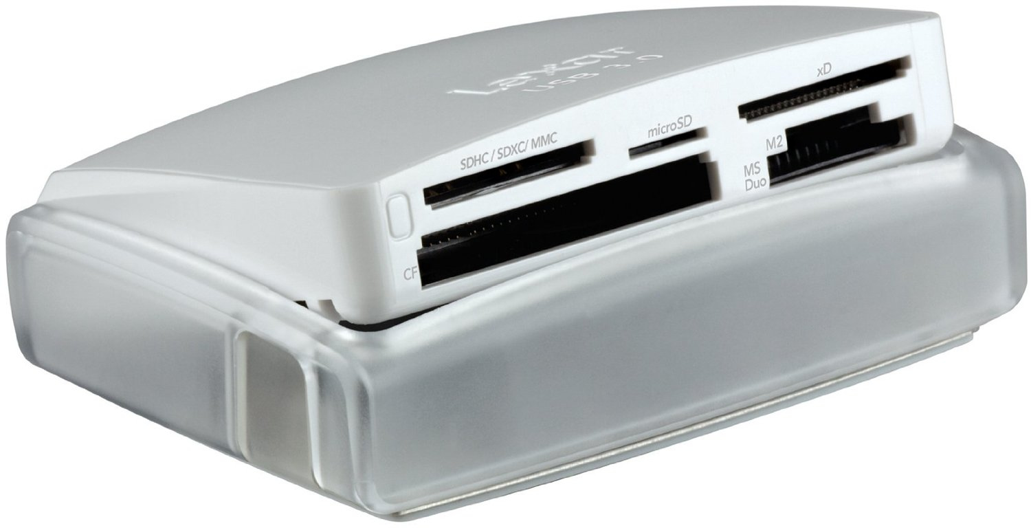 Innovative, Pop-Up Design. Created with convenience in mind, the Lexar Multi-Card 25-in-1 USB 3.0 Reader boasts an innovative, pop-up mechanism that allows you to open and close the reader with a simple push, protecting the card slots when not in use. As for looks, the reader’s designed to be a great addition to your workspace with its sleek, glossy white finish, and it sports a cool blue LED activity light to let you know when file transfer is complete.