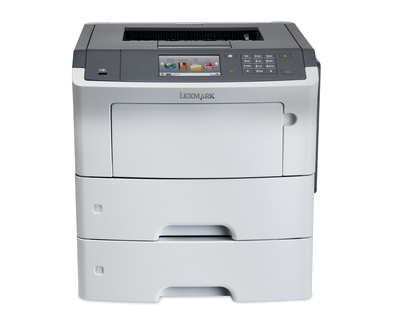 The Lexmark MS610dte network-ready laser printer includes a 10.9 cm (4.3-inch) colour touch-screen operator panel, internal two-sided printing, an 800MHz dual-core processor, 512MB of standard memory, 1,200-sheet input and a front USB Direct Interface.