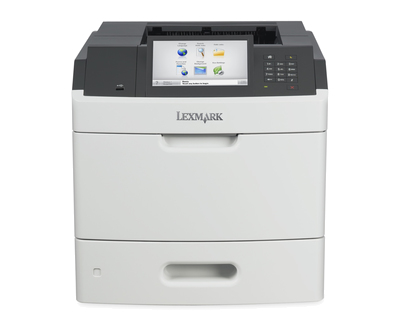 The Lexmark MS812de network-ready laser printer includes a 17.8 cm (7-inch) colour touch screen, internal two-sided printing, 800 MHz dual-core processor, 80+GB hard disk, 650-sheet standard input and a front USB Direct print port.