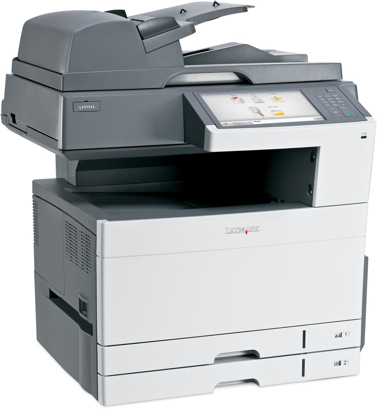 X925de - 600 x 600 dpi, 30/30 ppm, Duplex, 900 MHz, 512 MB, 53 dBA, CCD, LCD 10.2" Touch, USB, Energy Star, 79.2 kg