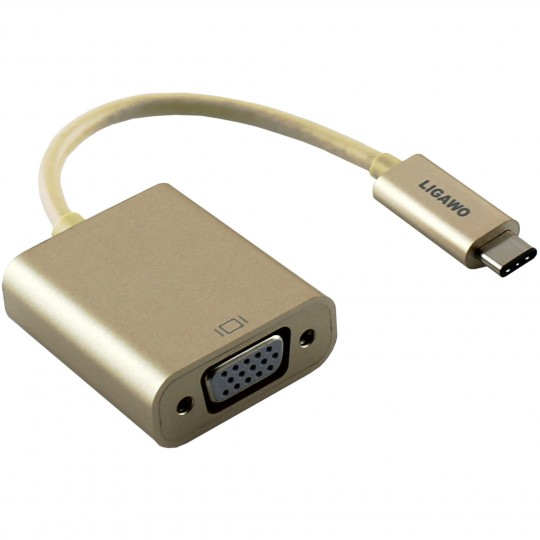 Ligawo 0.15m, USB3.1-C/VGA. Connector 1: USB3.1-C, Connector 2: VGA, Gender: Male/Female. Colour of product: Gold, Cable length: 0.15 m. Maximum resolution: 2048 x 1152 pixels, Compatible operating systems: Windows 10, Google Chrome OS, Linux, Mac OS 10.2, Compatibility: MacBook 2015, Mac Book 12", Google Chromebook Pixel, ASUS AiO Zen, DELL XPS 13f. Width: 4.2 cm, Depth: 15 cm, Height: 3.7 cm