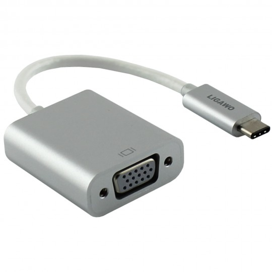 Ligawo 0.15m, USB3.1-C/VGA. Connector 1: USB3.1-C, Connector 2: VGA, Gender: Male/Female. Colour of product: Silver, Cable length: 0.15 m. Maximum resolution: 2048 x 1152 pixels, Compatible operating systems: Windows 10, Google Chrome OS, Linux, Mac OS 10.2, Compatibility: MacBook 2015, Mac Book 12", Google Chromebook Pixel, ASUS AiO Zen, DELL XPS 13. Width: 4.2 cm, Depth: 15 cm, Height: 3.7 cm