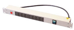 1U 8 Way Horizontal Mount PDU, UK Mains Plug to 8 x IEC Mains Sockets - Switched, 3m