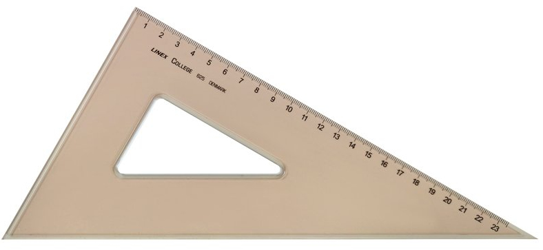 Set square made from transparent, coloured plastic with tracing edge, metric scale and 60° angle.
