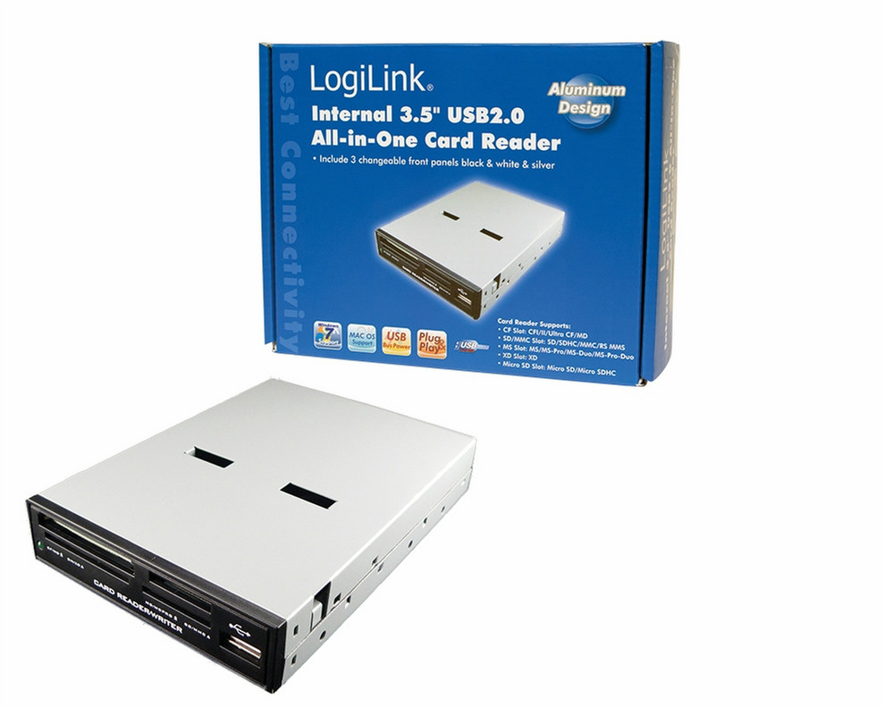 LogiLink Cardreader 3,5" USB 2.0 internal 54-in-1 with USB Front. Supported drive bays: 3.5". Interface type: USB 2.0. Data transfer rate: 480 Mbit/s. Colour of product: White