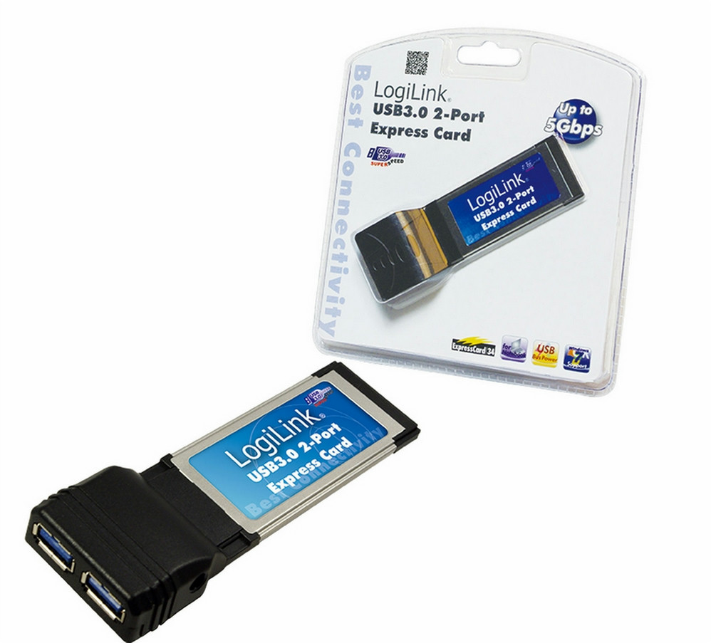 LogiLink Express Card - USB 3.0 2x. Host interface: ExpressCard, Output interface: USB 3.0. Colour of product: Black, Silver. Data transfer rate: 5000 Mbit/s, Connectivity technology: Wired