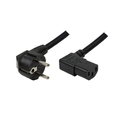 The power plug and IEC connector are bent. The cable is black, the length is 2.00 meters.