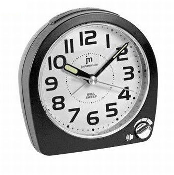 Analogue quartz alarm clock with crescendo, EL light and 5 minutes snooze. Sweep movement.