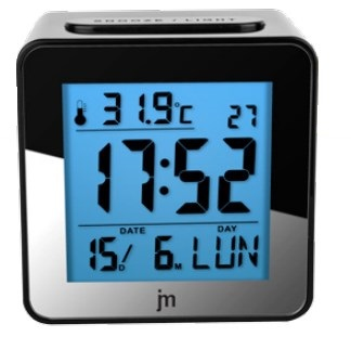 Digital alarm clock with EL delayed light and 4 minute snooze. Indication of indoor temperature. Calendar (day, month, year) with day of week available in 8 languages (italian, english, german, french, spanish, dutch, polish and czech).