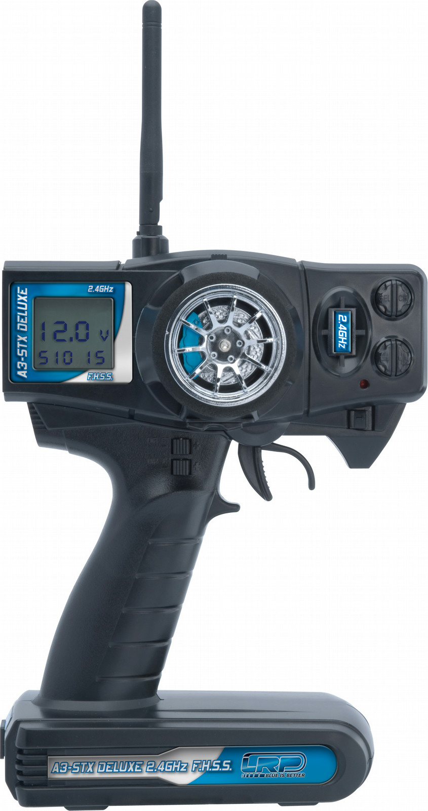 Show me your skills ... the 2.4Ghz transmitter A3-STX Deluxe demonstrates, what it is able to. The new generation of LRP transmitters features a big, blue backlit LC display. Here all settings can be adjusted digitally and read comfortably. In addition, the A3-STX Deluxe features the extremely interference-free F.H.S.S. technology making the 2.4GHz system even better and safer.
