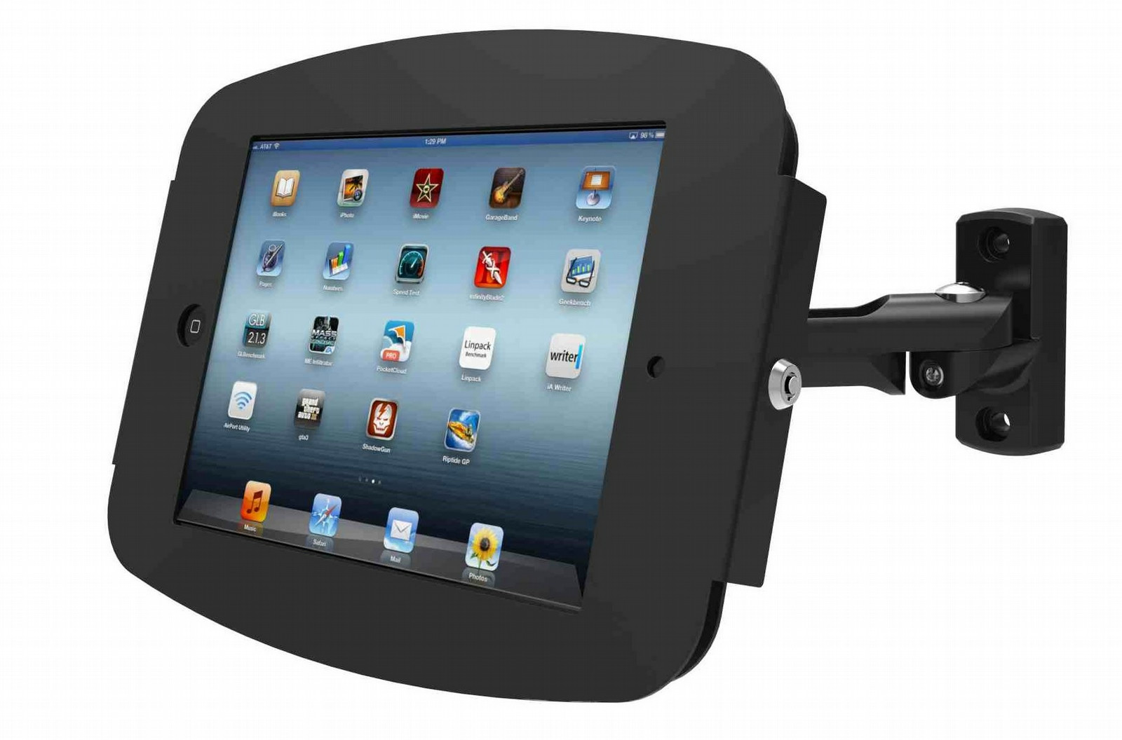 The iPad Space Swing Arm mount secures the iPad and iPad Mini against theft and is completely tamper-resistant.