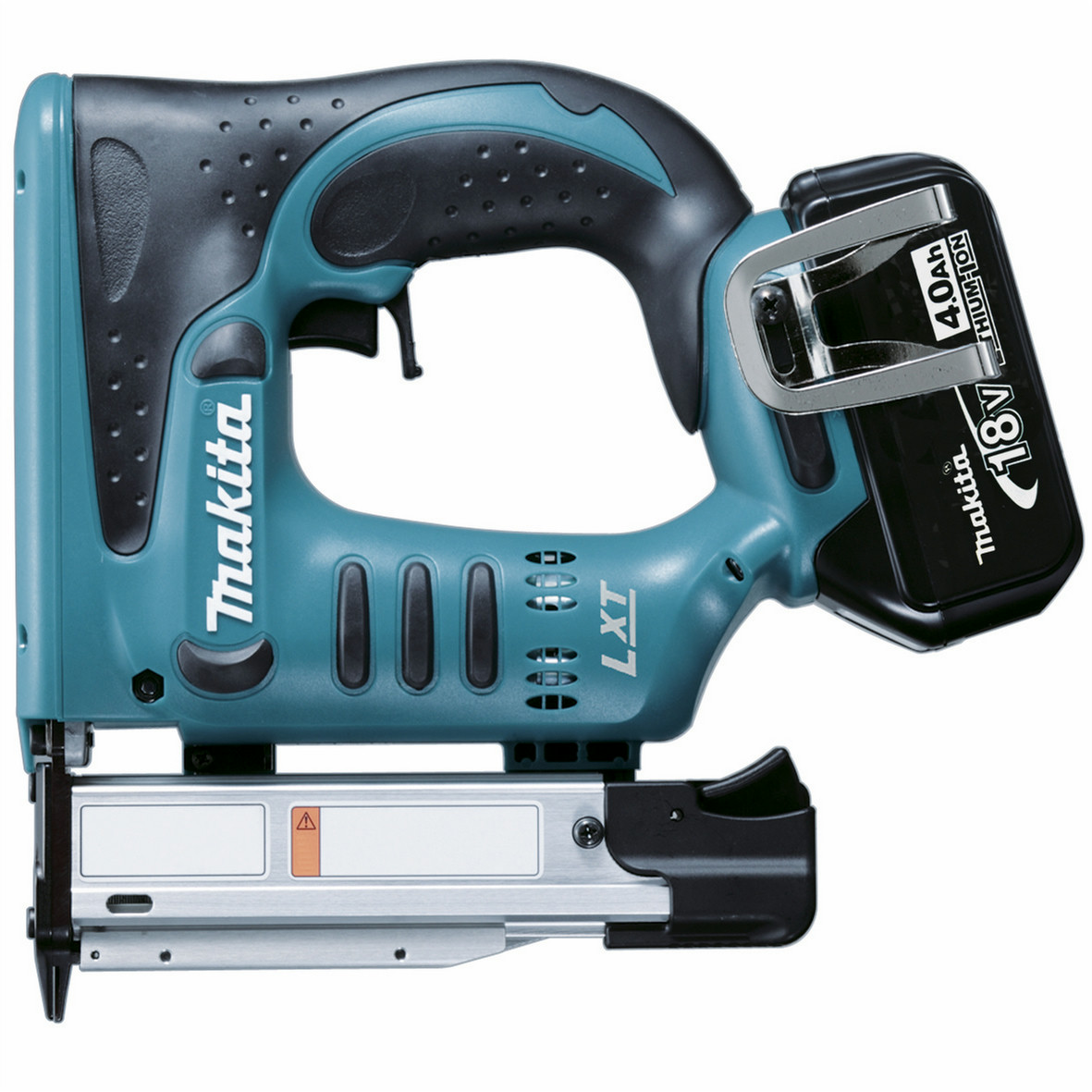 Makita DPT351RMJ. Nail lengths supported: 18 - 35 mm, Nail diameters supported: 0.6 mm. Battery technology: Lithium-Ion (Li-Ion), Battery capacity: 4000 mAh, Battery voltage: 18 V. Width: 79 mm, Depth: 249 mm, Height: 227 mm. Colour of product: Black, Blue