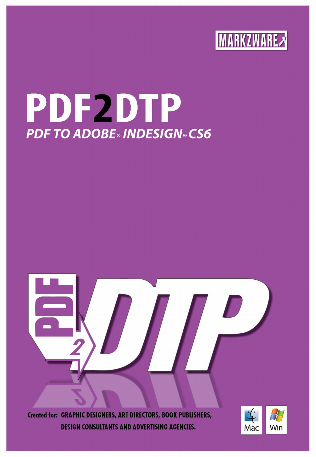 PDF2DTP provides a quick, easy and affordable method for you to migrate content from PDF into an editable format within Adobe InDesign or QuarkXPress. Once in InDesign, users are now in a flexible and familiar environment, allowing for much easier editing.