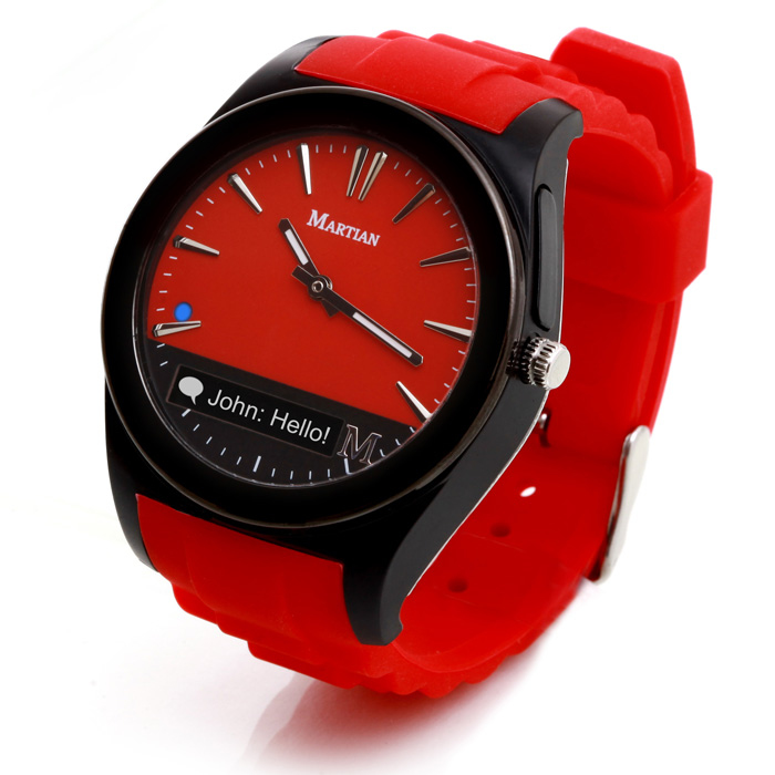 The Martian Notifier is an attractive, colorful analog wristwatch with an integrated OLED readout that acts as a hands-free notification of real time alerts, keeping you well informed while your phone remains in a pocket, purse or backpack. The Notifier also lets you completely customize the look with our line of quick change color bands!