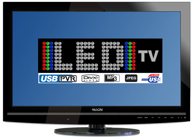 Mascom MC22LH44USB. Display diagonal: 55.9 cm (22"), HD type: Full HD, Display resolution: 1920 x 1080 pixels. Analog signal format system: PAL,SECAM, Digital signal format system: DVB-T, Tuner type: Analog & digital. RMS rated power: 10 W, Audio system: Stereo NICAM/A2. Colour of product: Black. VESA mounting interfaces: 100 x 100 mm