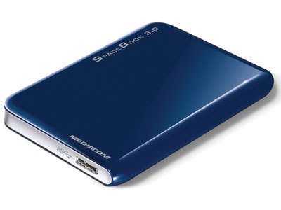 Mediacom SpaceBook 3.0 640GB. Hard drive interface: Serial ATA II. USB version: 3.0 (3.1 Gen 1), USB connector type: USB Type-A. Windows operating systems supported: Windows 2000, Windows 7 Home Premium, Windows 7 Professional, Windows 7 Starter, Windows 7 Ultimate,, Mac operating systems supported: Mac OS 9.0. Colour of product: Blue, Housing material: Plastic. Cables included: USB