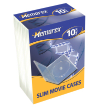 Memorex slim DVD cases are ½ the depth of standard DVD cases, which allows you to store twice the number of cases in the same space. Each case has a patented centring hub, which protects DVD discs from damage.