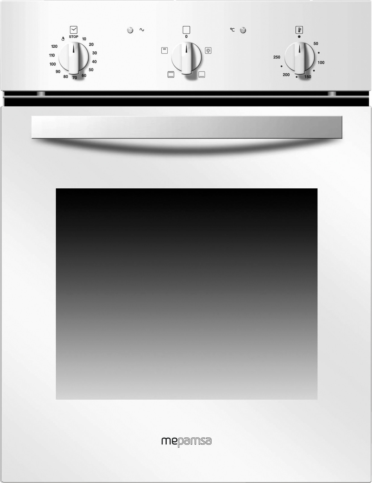 Mepamsa Inca 2. Oven type: Electric oven, Total oven(s) interior capacity: 38 L, Thermostat range (1st oven): 0 - 250 °C. Colour of product: White, Control type: Rotary. Timer type: Mechanical. Energy efficiency class: A. Width: 450 mm, Depth: 571 mm, Height: 596 mm