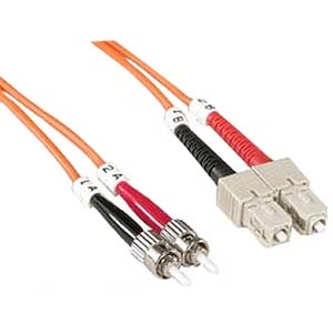 1m Fiber Optic Duplex Cable, ST - SC, Male/Male, Multimode