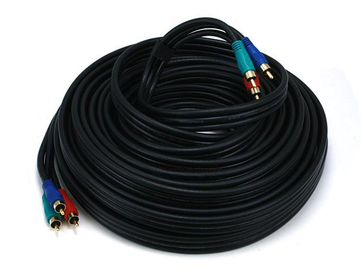 Component video, also known as YPbPr, produces the highest quality analog video. This cable includes conductors for each of the three component video channels (Red, Green, Blue) and is ideal for connecting the analog video output of DVD players and VCRs to the corresponding inputs on your TV.