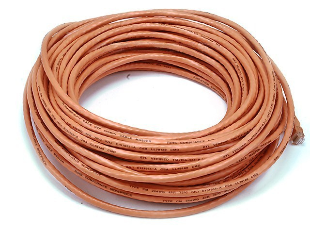 Monoprice Cat5e fixed length network cables are the perfect combination of value and performance. Available in a large assortment of colors and lengths, we have a cable to fit every situation. Each cable is made of 24AWG stranded pure bare copper conductor pairs with 50µm gold plated contacts (short body). Most budget cables skimp with only 10µm. Each cable features color matched, snagless strain relief boots.