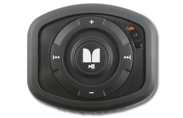 The Monster iEZClick features a rugged weather-resistant body for outdoor use in the elements. You can wear it on your belt or bag with the included clip, or wrap it on your wrist or handlebars with the elastic velcro strap. The oversized buttons give you no look control and are easy to use even with gloves on.