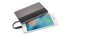 Power up with Moshi's IonBank 5K, a slim, stylish portable battery designed with anodized aluminum and vegan leather accents. Unlike most battery packs which require you to carry extra cables, IonBank includes hideaway Lightning and USB cables that minimize clutter while on-the-go. IonBank 5K uses the latest in lithium-polymer technology to deliver a capacity of 5,150 mAh, enough to recharge your iPhone 6s up to 2 times. It outputs at 2.4 amps for quick-charging of any connected device. SmartSense™ circuitry prioritizes charging your iOS device first and funnels extra current to recharge IonBank at the same time. Advanced features and premium construction make IonBank the premier choice for users looking for the very best in portable charging.