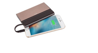 Power up with Moshi's IonBank 5K, a slim, stylish portable battery designed with anodized aluminum and vegan leather accents. Unlike most battery packs which require you to carry extra cables, IonBank includes hideaway Lightning and USB cables that minimize clutter while on-the-go. IonBank 5K uses the latest in lithium-polymer technology to deliver a capacity of 5,150 mAh, enough to recharge your iPhone 6s up to 2 times. It outputs at 2.4 amps for quick-charging of any connected device. SmartSense™ circuitry prioritizes charging your iOS device first and funnels extra current to recharge IonBank at the same time. Advanced features and premium construction make IonBank the premier choice for users looking for the very best in portable charging.