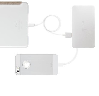 Moshi's IonBank 5K is a mobile charger capable of charging your iPhone multiple times with its lithium-polymer cell rated at 5,000 mAh. For convenience, IonBank 5K comes with an integrated Lightning cable to charge your iPhone and a USB cable to charge itself. The extra USB port on IonBank 5K allows for a second device to be charged, whether it be another iPhone or even an Android device. Utilizing Moshi's DPS (Dynamic Power Sharing) technology, IonBank intelligently detects and delivers the optimal charge rate to each connected device. Unlike typical lithium-ion battery packs on the market, IonBank uses higher grade lithium-polymer cells for greater reliability and longevity. Simply plug your IonBank into any USB wall or car charger to recharge.
