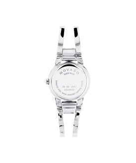 This polished women’s bangle-style watch with smoothly sculpted lines features removable sizing links at the back for an adjustable fit. Multi-setting jewelry clasp.