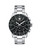 Men's Series 800 chronograph, 42 mm Performance Steel case with black aluminum tachymeter bezel, round black dial with matching minute reflector ring and 3 timing subdials, silver-toned dot, hands, applied markers, printed indices, luminescent detail, and date display, Performance Steel link bracelet with push-button deployment clasp.