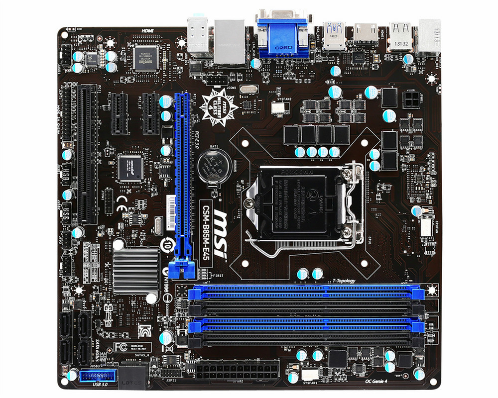 CSM-B85M-E45, LGA1150, B85 Express, 4x DIMM, XMP, PCI-Express 3.0, SATAII/SATAIII, Realtek ALC887, Gigabit Ethernet, USB 3.0, HDMI, DVI-D