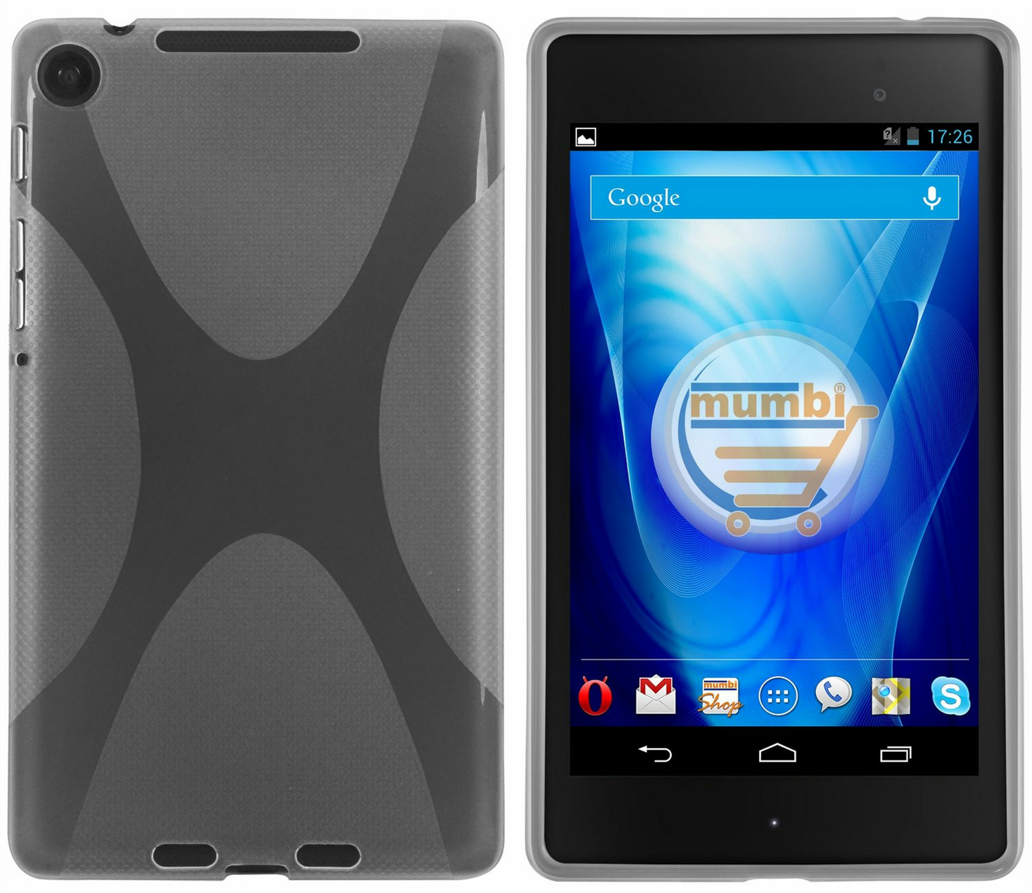 mumbi 64. Maximum screen size compatibility: 17.8 cm (7"), Case type: Cover, Colour of product: Black, Transparent