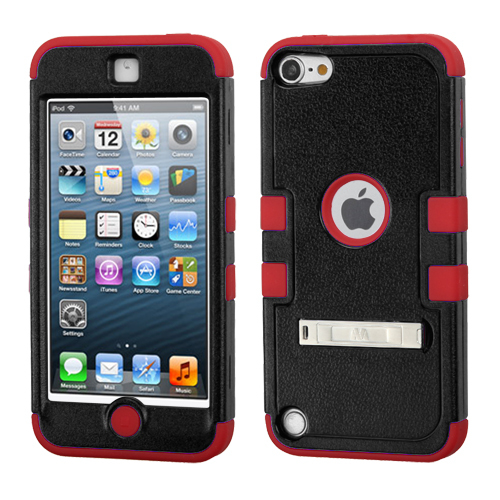 TUFF Hybrid Protector Cover with Stand for Apple iPod touch 5 Generation, Black/Red