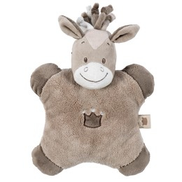 Soft cuddly toy that also serve as a small cushion to comfort your baby.