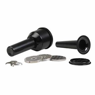 The FG-500 features a lighted power indicator and comes with a sausage stuffer, food pusher, three stainless plates and blade.