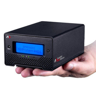Guardian MAXimus mini is ready to go wherever your "mobile office" needs take you. Bus-powered (no AC adapter required) and weighing as little as 1.24 pounds, it offers maximum data protection with minimal gear bag bulk. While ultra compact, the Guardian MAXimus mini comes packed with high performance features like dual hard drives or SSDs, data transfer speeds up to 300MB/s, and user conveniences like a front panel LCM screen/control interface for drive and system status monitoring.