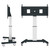 Easily roll this cart over doorways and thresholds with to the high quality wheels. The mobile electric floor lift is automatically height adjustable over a height of 50 cm with a remote control. From the floor to the center the distance of the screen is variable from 101 cm to 157 cm.