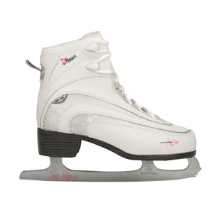 - vinyl figure skate boot, polyester lining, with lacing, riveted stainless steel figure skate blades - The blades have been pre-sharpened!