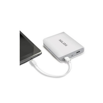 Nilox NXPB8000W. Colour of product: White, Charger compatibility: Universal. Battery capacity: 8000 mAh, Charging source: USB, Battery charge time (USB): 9 h. Width: 80 mm, Depth: 90 mm, Height: 22 mm. Cables included: Micro-USB