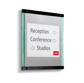Informe Wall Signs, A3 Inform and direct, visitors and colleagues in a professional manner with Nobo Informe wall signs. Use these flush-fitting signs outside meeting rooms, by lifts, or along corridors where directional signage is required. Notices can be easily prepared and printed in house, whilst the contemporary design of acrylic panels with stylish frosted glass effect finish will ensure to complement and enhance any environment.